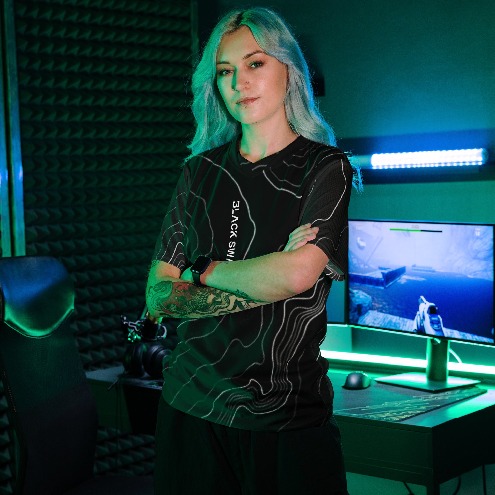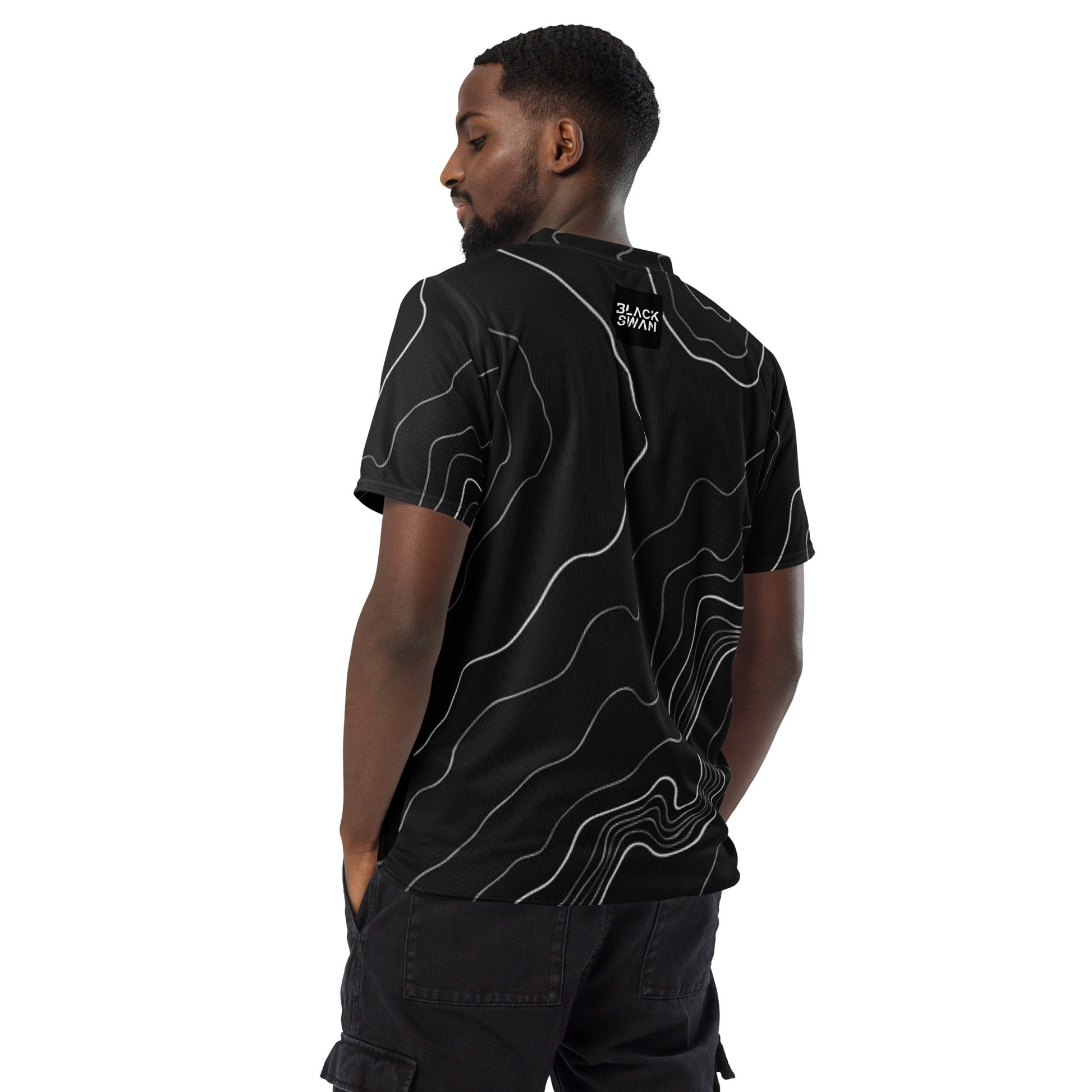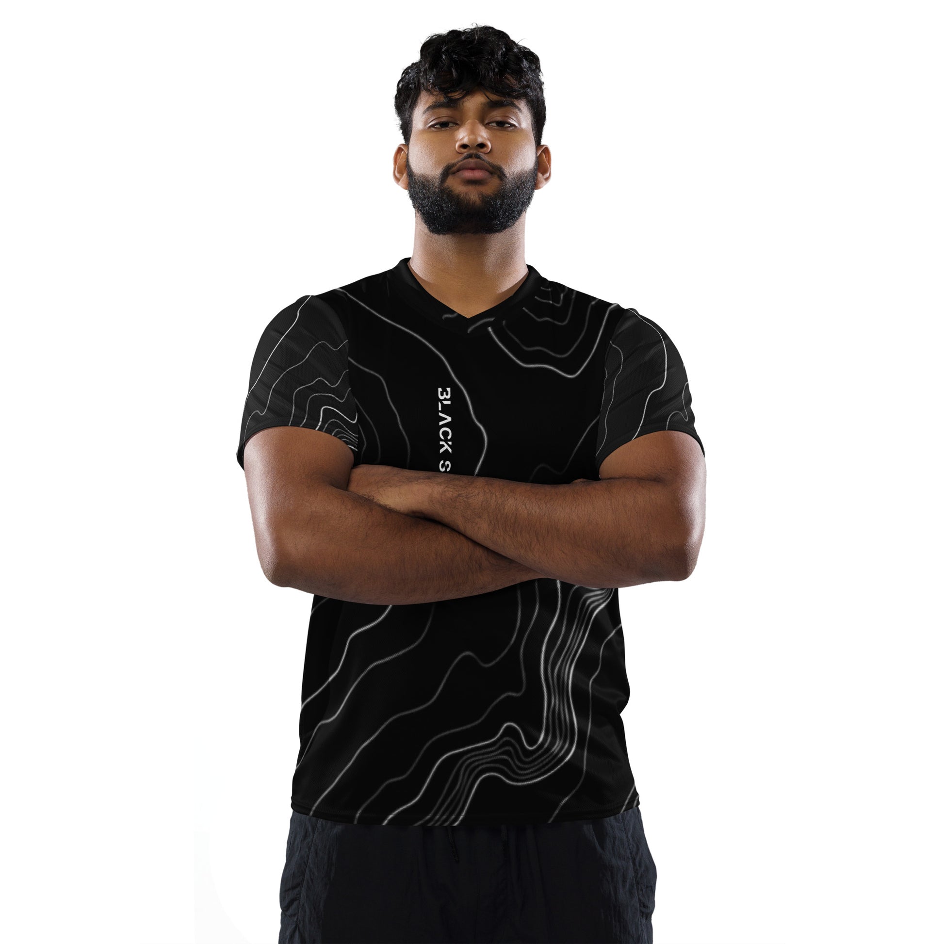 Looking for the perfect sports jersey? We have you covered—made of 100% recycled polyester fabric, this shirt is breathable, moisture-wicking, and has a double-layered v-neck collar that creates a premium look.