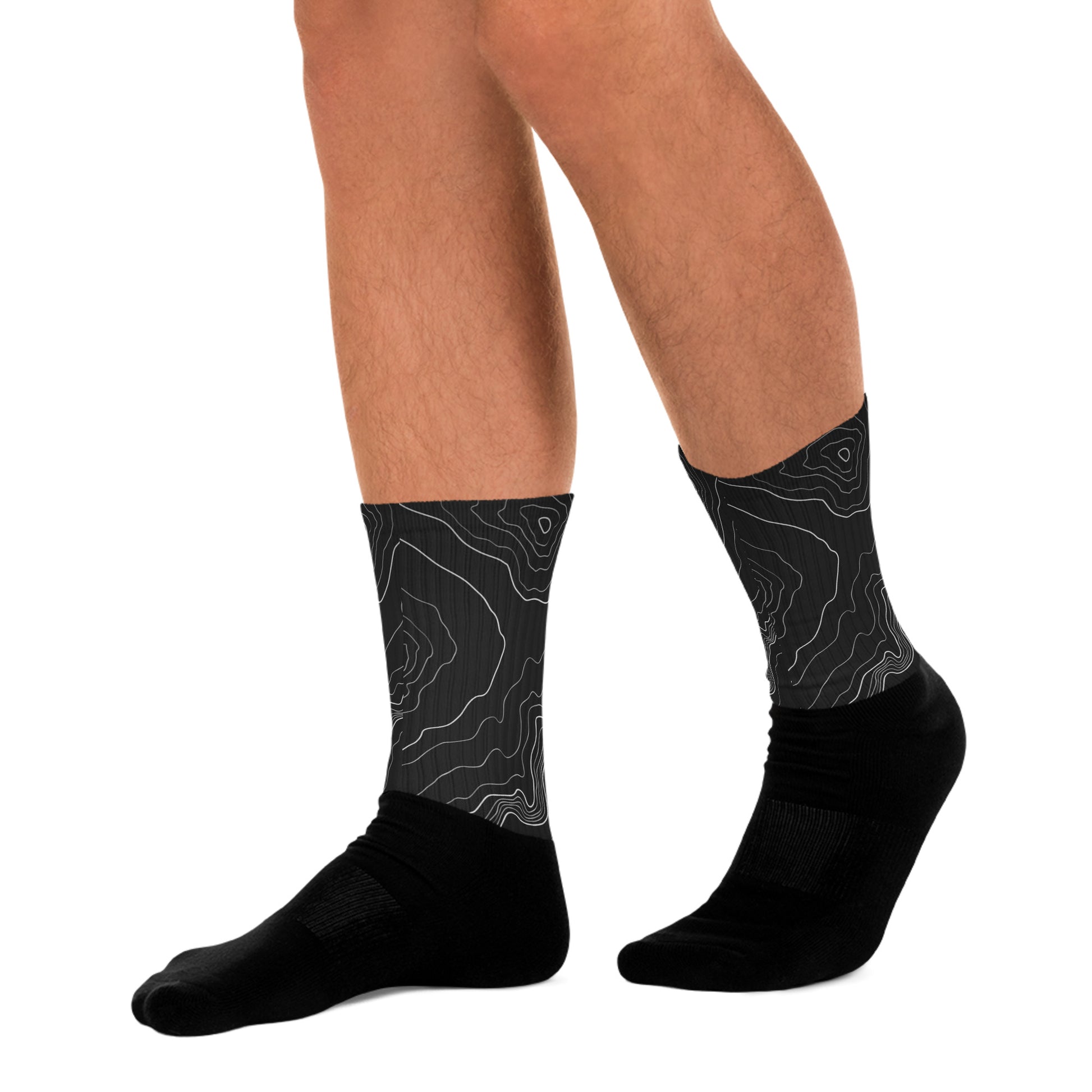 These socks are extra comfortable thanks to their cushioned bottom. The foot is black with artwork printed along the leg with crisp, bold colors that won't fade.